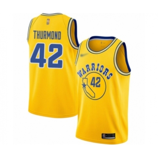 >Men's Golden State Warriors #42 Nate Thurmond Authentic Gold Hardwood Classics Basketball Jersey