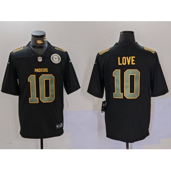 >Men's Green Bay Packers #10 Jordan Love Black Fashion Vapor Limited Stitched Football Jerseys