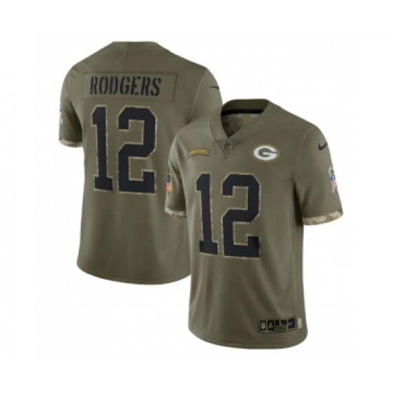 Men's Green Bay Packers #12 Aaron Rodgers 2022 Olive Salute To Service Limited Stitched Jersey