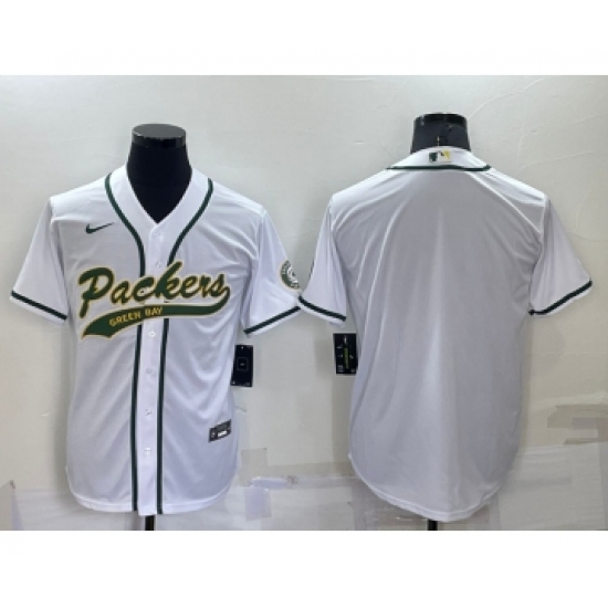 Men's Green Bay Packers Blank White Stitched MLB Cool Base Nike Baseball Jersey