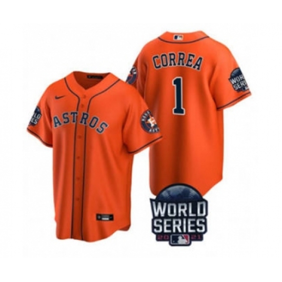 Men's Houston Astros #1 Carlos Correa 2021 Orange World Series Cool Base Stitched Baseball Jersey