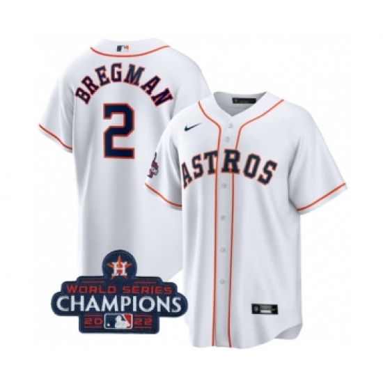 >Men's Houston Astros #2 Alex Bregman White 2022 World Series Champions Home Stitched Baseball Jersey