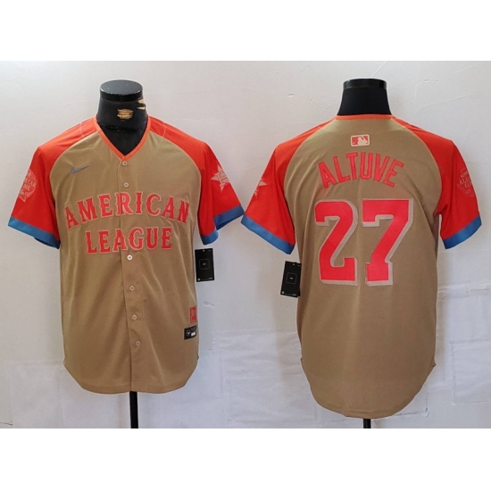 >Men's Houston Astros #27 Jose Altuve Cream 2024 All Star Limited Stitched Jersey