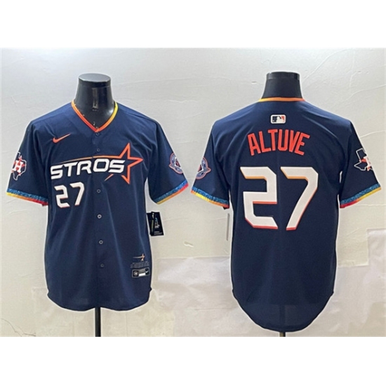 >Men's Houston Astros #27 Jose Altuve Navy 2025 City Connect With Texas Patch Limited Stitched Baseball Jersey