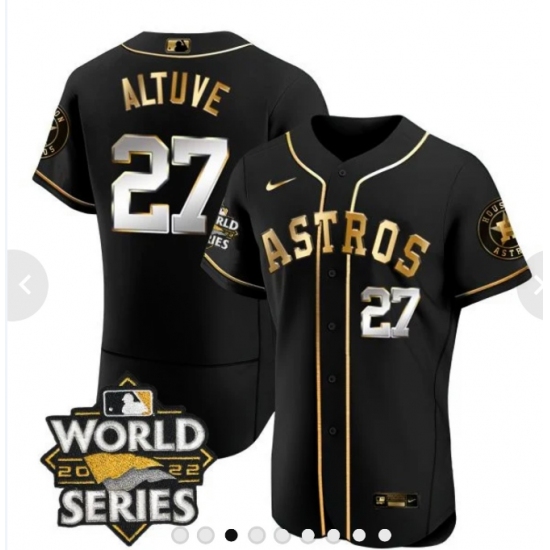 Men's Houston Astros #27 Jose Altuve Number Black 2022 World Series patches Jersey