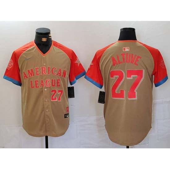 >Men's Houston Astros #27 Jose Altuve Number Cream 2024 All Star Limited Stitched Jersey