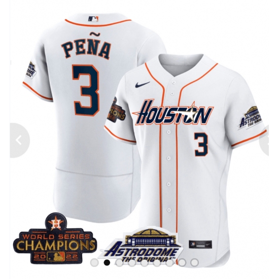 Men's Houston Astros #3 Jeremy Pena 2023 White World Serise Champions Base Stitched Jerseys