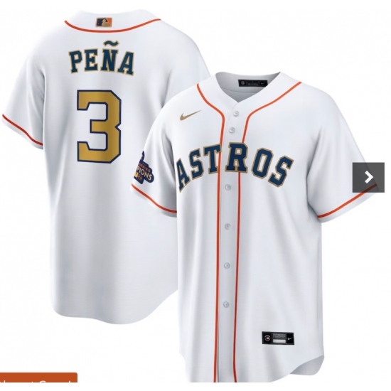 Men's Houston Astros #3 Jeremy Pena Nike White Gold 2023 Gold Collection Replica Player Jersey