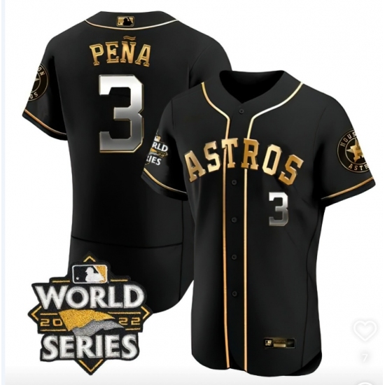 Men's Houston Astros #3 Jeremy Pena Number Black 2022 World Series patches Jersey