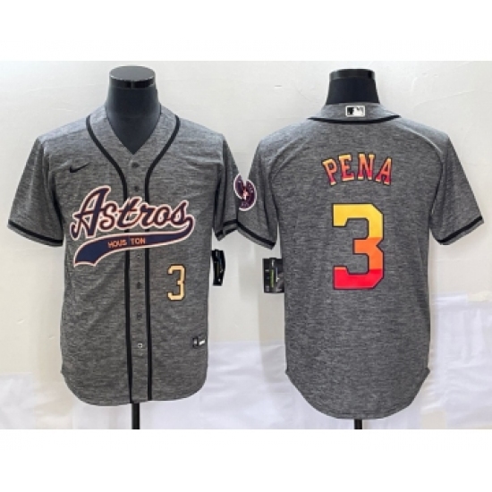 >Men's Houston Astros #3 Jeremy Pena Number Grey Gridiron Cool Base Stitched Baseball Jersey