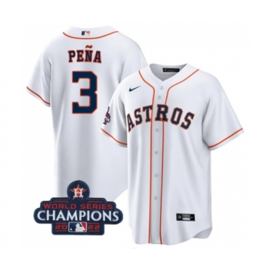 Men's Houston Astros #3 Jeremy Pena White 2022 World Series Champions Cool Base Stitched Baseball Jersey