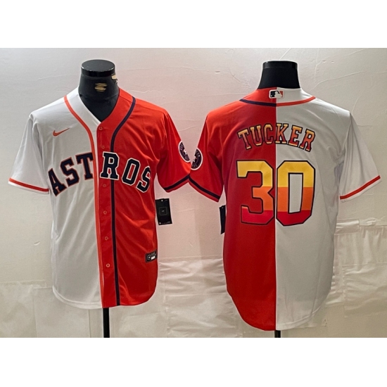 Men's Houston Astros #30 Kyle Tucker White Orange Split Stitched Baseball Jerseys