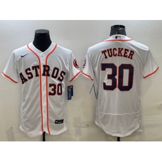 >Men's Houston Astros #30 Kyle Tucker White Stitched MLB Flex Base Nike Jersey
