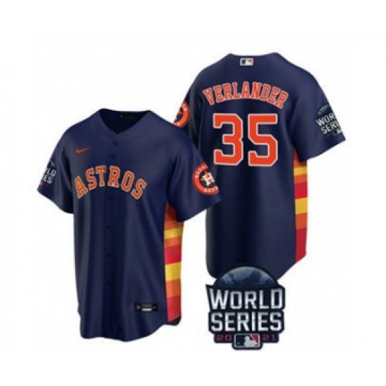 Men's Houston Astros #35 Justin Verlander 2021 Navy World Series Cool Base Stitched Baseball Jersey