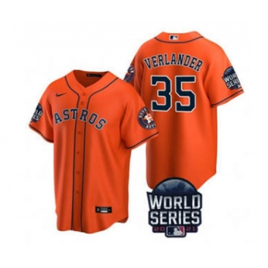Men's Houston Astros #35 Justin Verlander 2021 Orange World Series Cool Base Stitched Baseball Jersey