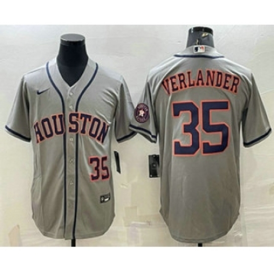 Men's Houston Astros #35 Justin Verlander Number Grey With Patch Stitched MLB Cool Base Nike Jersey