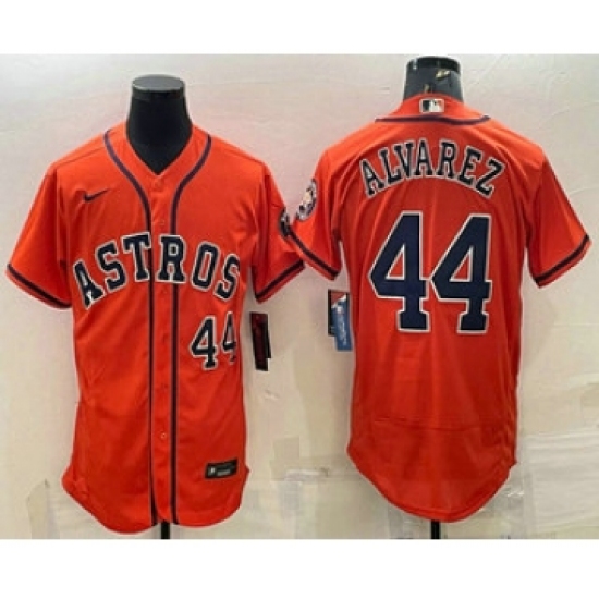 >Men's Houston Astros #44 Yordan Alvarez Number Orange Stitched MLB Flex Base Nike Jersey