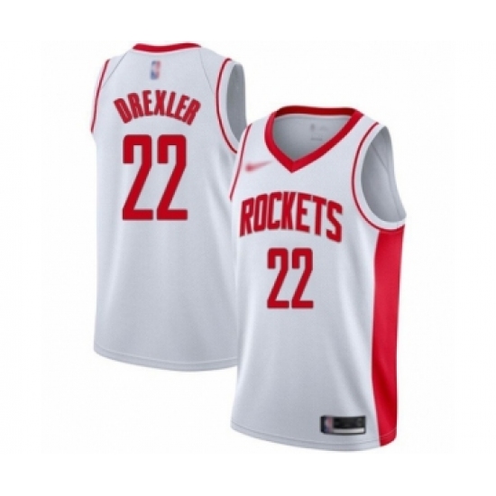 Men's Houston Rockets #22 Clyde Drexler Authentic White Finished Basketball Jersey - Association Edition