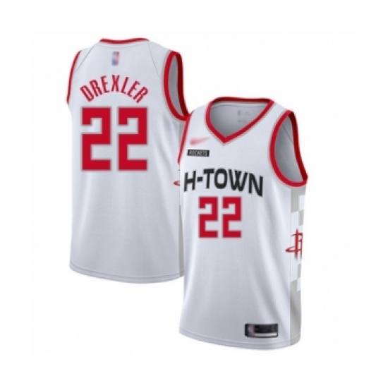 >Men's Houston Rockets #22 Clyde Drexler Swingman White Basketball Jersey - 2019 20 City Edition