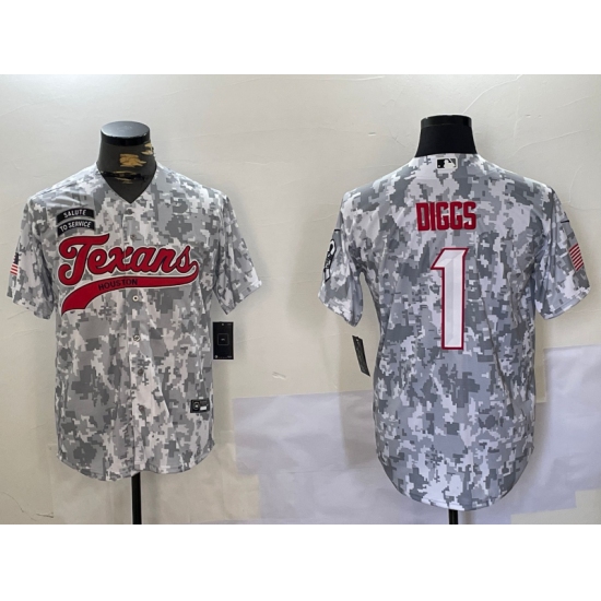>Men's Houston Texans #1 Stefon Diggs Arctic Camo 2024 Salute to Service Stitched Baseball Jersey