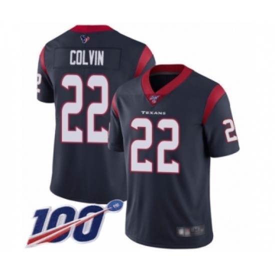 Men's Houston Texans #22 Aaron Colvin Navy Blue Team Color Vapor Untouchable Limited Player 100th Season Football Jersey
