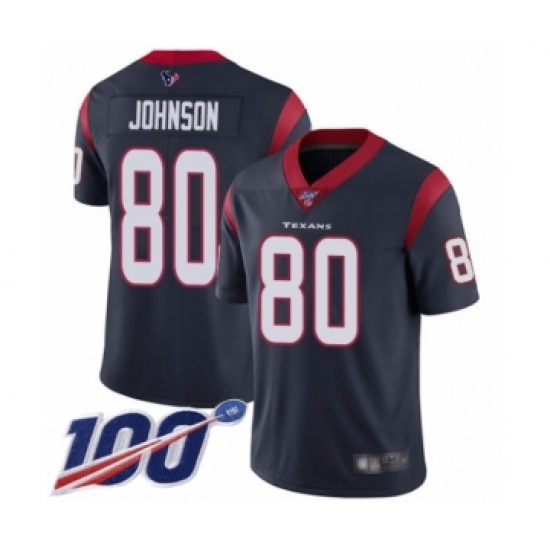 >Men's Houston Texans #80 Andre Johnson Navy Blue Team Color Vapor Untouchable Limited Player 100th Season Football Jersey