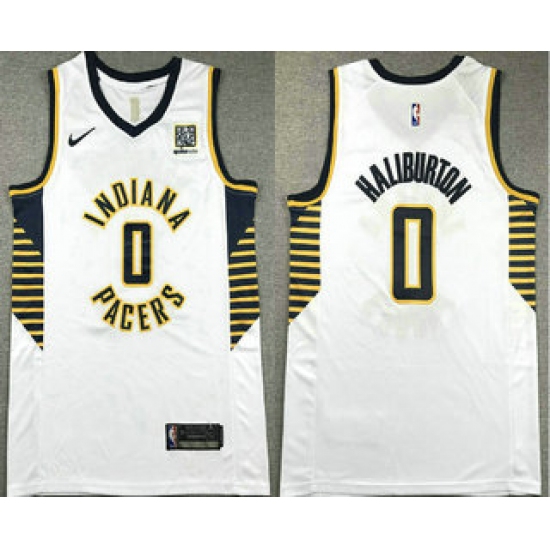 Men's Indiana Pacers #0 Tyrese Haliburton White Association Edition Sponsor Stitched Jersey