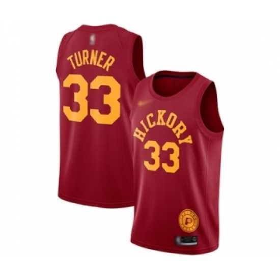 Men's Indiana Pacers #33 Myles Turner Authentic Red Hardwood Classics Basketball Jersey