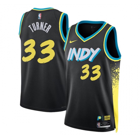 Men's Indiana Pacers #33 Myles Turner Black 2023-24 City Edition Stitched Basketball Jersey