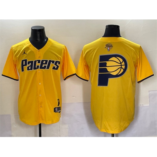 Men's Indiana Pacers Team Big Logo Yellow 2025 Finals Vapor Stitched Baseball Jersey