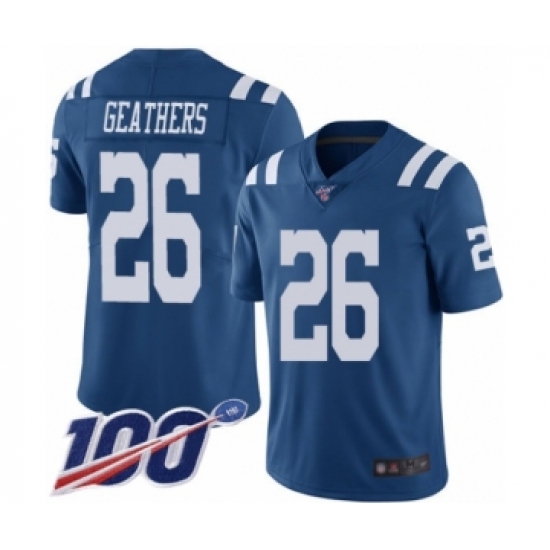 Men's Indianapolis Colts #26 Clayton Geathers Royal Blue Team Color Vapor Untouchable Limited Player 100th Season Football Jersey