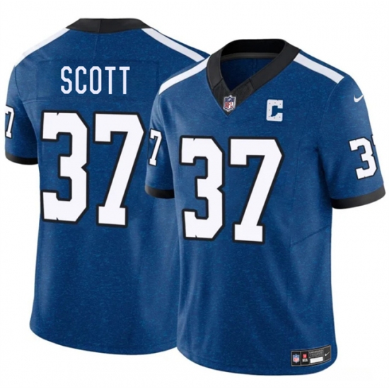 >Men's Indianapolis Colts #37 Daniel Scott Blue 2025 F.U.S.E. Throwback Vapor Limited Football Stitched Jersey