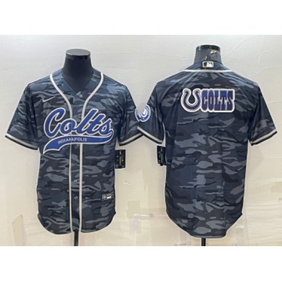 >Men's Indianapolis Colts Grey Camo Team Big Logo With Patch Cool Base Stitched Baseball Jersey