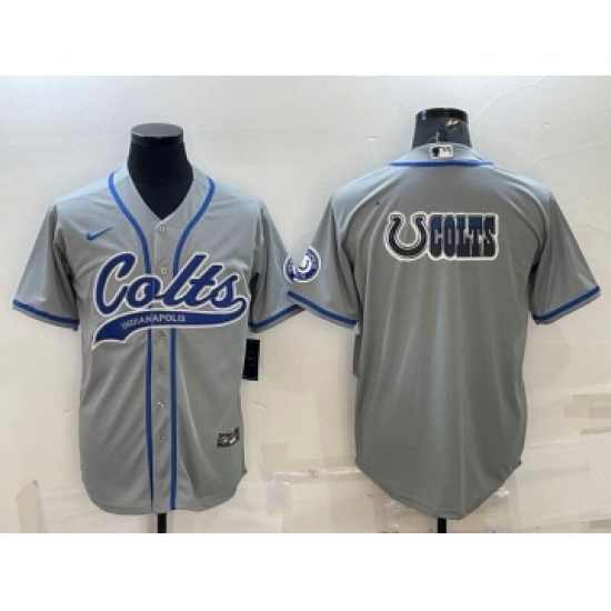 Men's Indianapolis Colts Grey Team Big Logo With Patch Cool Base Stitched Baseball Jersey