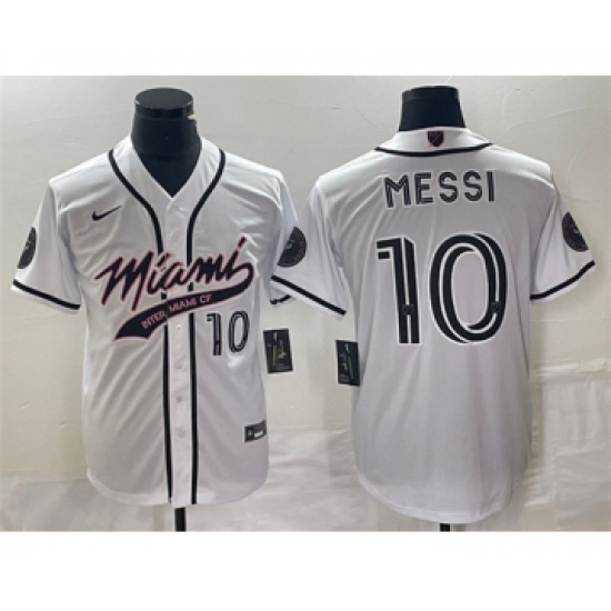 Men's Inter Miami CF #10 Lionel Messi White Cool Base Stitched Jersey