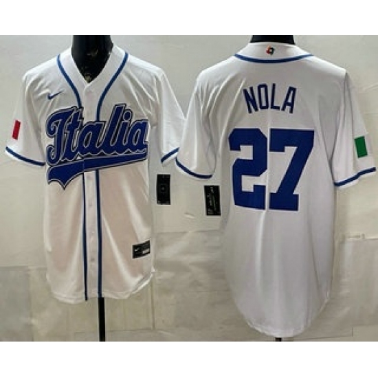 >Men's Italy #27 Aaron Nola White 2026 World Baseball Classic Cool Base Jersey