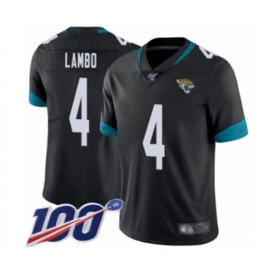 >Men's Jacksonville Jaguars #4 Josh Lambo Black Team Color Vapor Untouchable Limited Player 100th Season Football Jersey