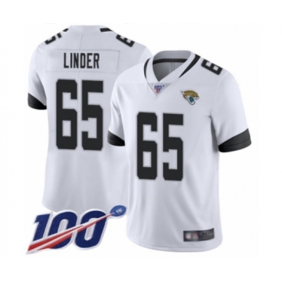 Men's Jacksonville Jaguars #65 Brandon Linder White Vapor Untouchable Limited Player 100th Season Football Jersey