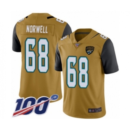 >Men's Jacksonville Jaguars #68 Andrew Norwell Limited Gold Rush Vapor Untouchable 100th Season Football Jersey