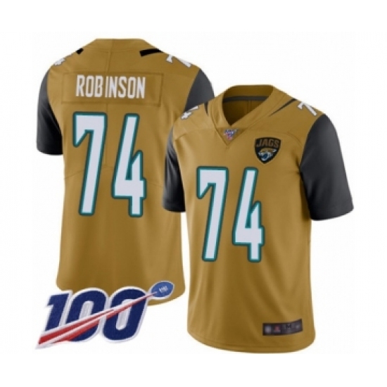 >Men's Jacksonville Jaguars #74 Cam Robinson Limited Gold Rush Vapor Untouchable 100th Season Football Jersey