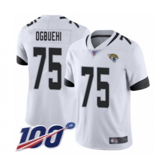>Men's Jacksonville Jaguars #75 Cedric Ogbuehi White Vapor Untouchable Limited Player 100th Season Football Jersey