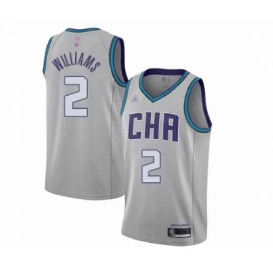 >Men's Jordan Charlotte Hornets #2 Marvin Williams Swingman Gray Basketball Jersey - 2019 20 City Edition