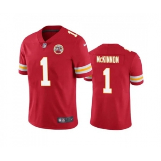>Men's Kansas City Chiefs #1 Jerick McKinnon Red Vapor Untouchable Limited Stitched Football Jersey