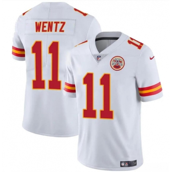 >Men’s Kansas City Chiefs #11 Carson Wentz White Vapor Untouchable Limited Football Stitched Jersey