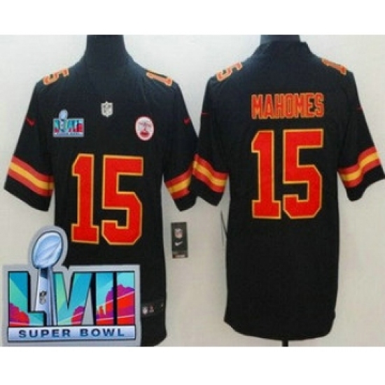 >Men's Kansas City Chiefs #15 Patrick Mahomes Limited Black Super Bowl LVII Vapor Jersey