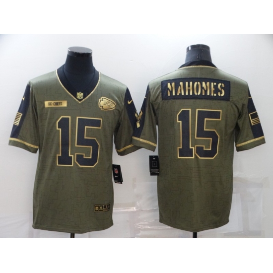 Men's Kansas City Chiefs #15 Patrick Mahomes Nike Gold 2021 Salute To Service Limited Player Jersey