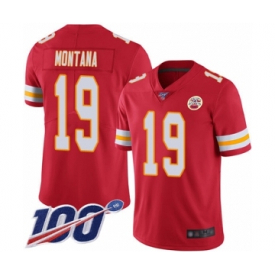Men's Kansas City Chiefs #19 Joe Montana Red Team Color Vapor Untouchable Limited Player 100th Season Football Jersey