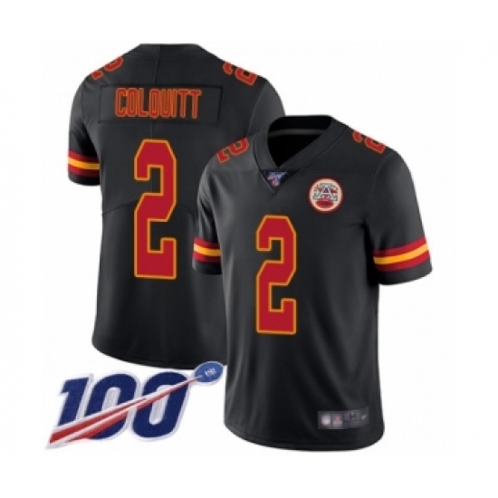 >Men's Kansas City Chiefs #2 Dustin Colquitt Limited Black Rush Vapor Untouchable 100th Season Football Jersey