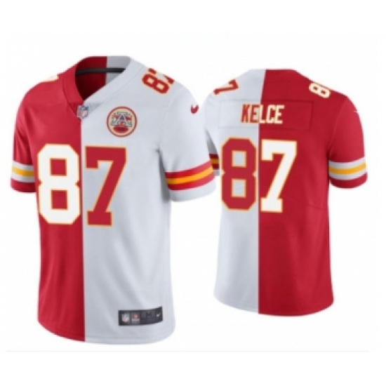 Men’s Kansas City Chiefs #87 Travis Kelce Red & White Split Limited Stitched Jersey