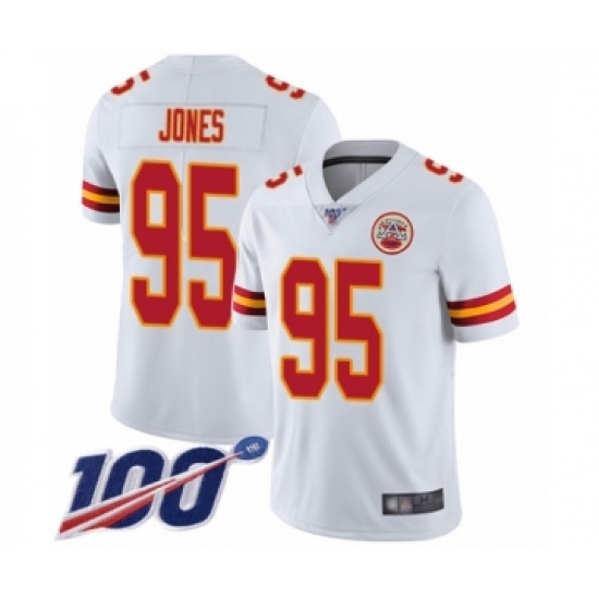 Men's Kansas City Chiefs #95 Chris Jones White Vapor Untouchable Limited Player 100th Season Football Jersey